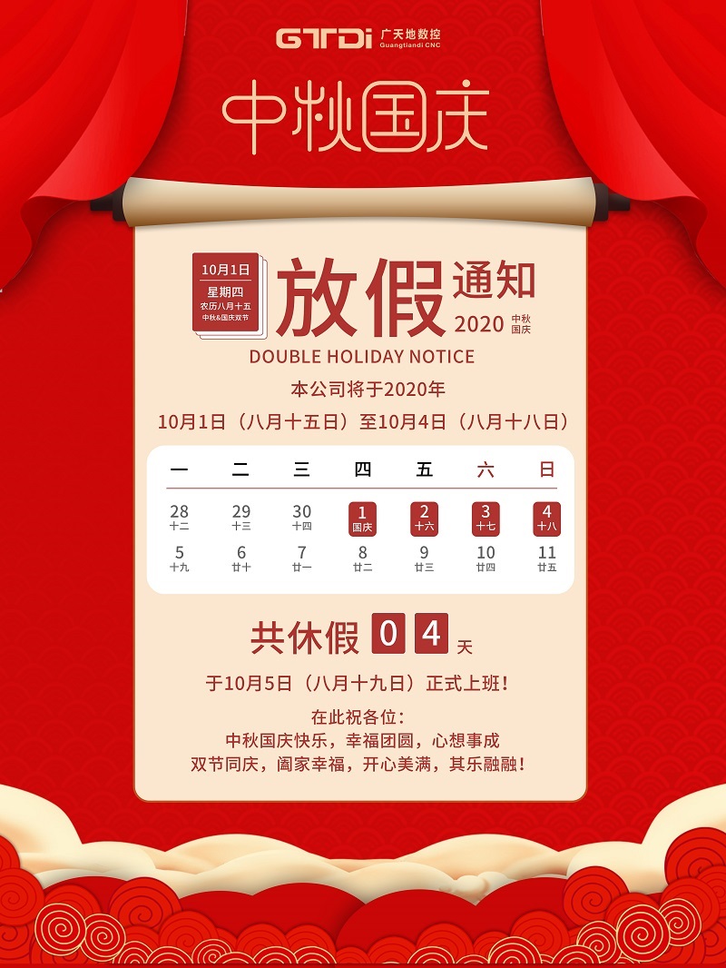 亚星|会员数控2020年国庆中秋节放假通知