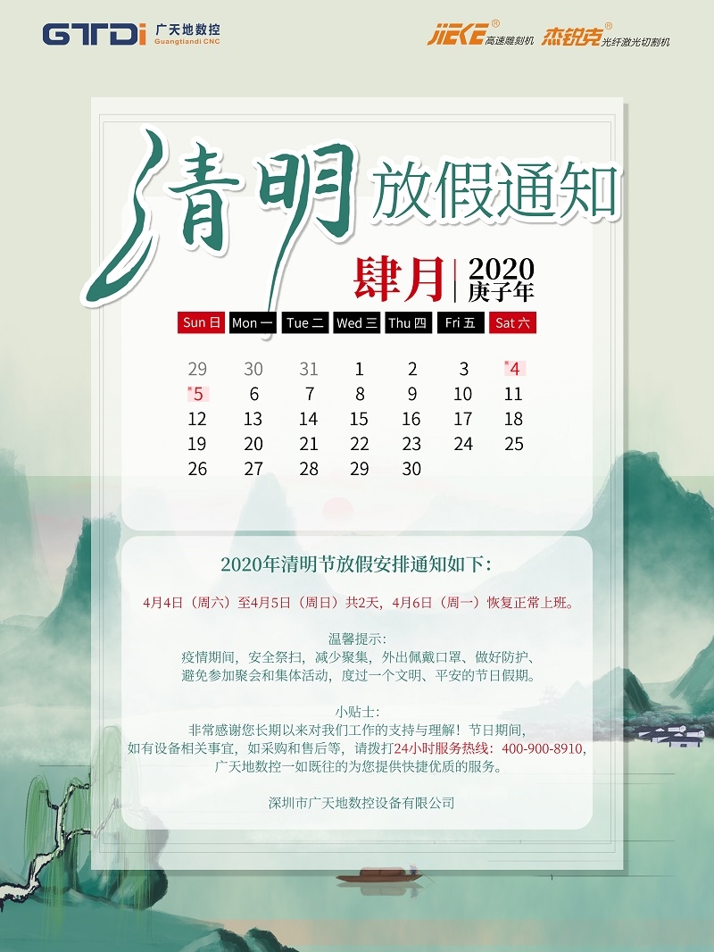 根据2020年法定放假安排并结合我司实际情况,现将清明节放假安排通知如下:
